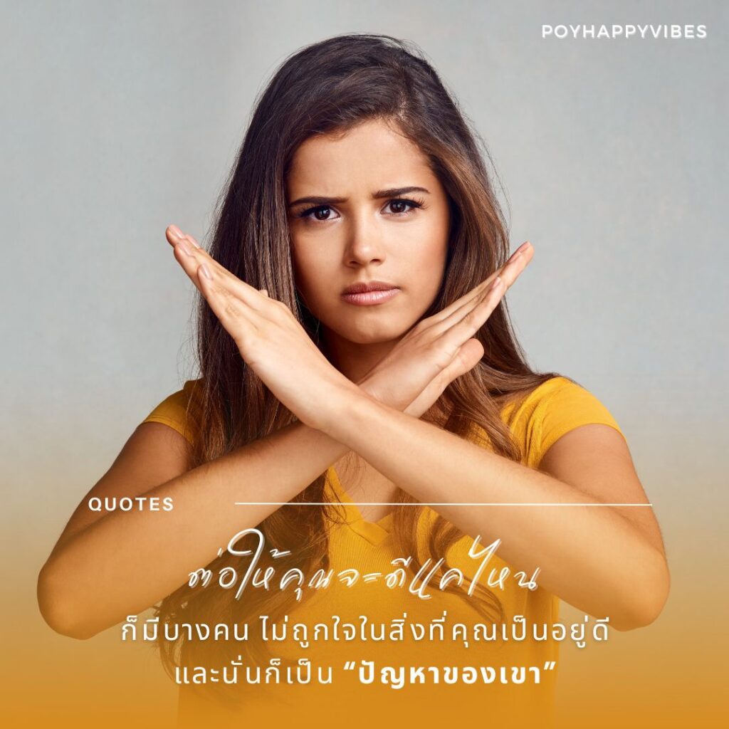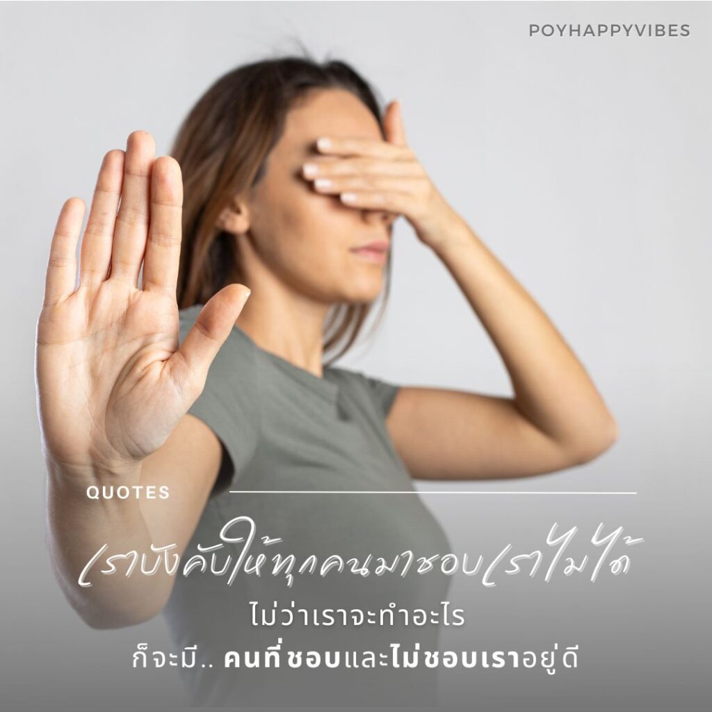 เราต้องยอมรับความจริงว่า เราไม่สามารถบังคับให้ทุกคนชอบเราได้ เพราะไม่ว่าเราจะทำอย่างไร ก็ยังมีผู้คนที่ชอบและไม่ชอบเราเสมอ